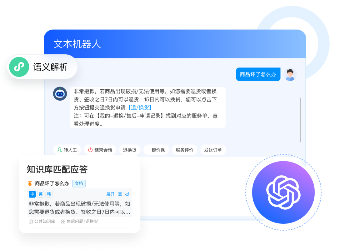 提供智能在线机器人功能,优化服务体验,降低企业成本,对接智能体,拓展更多智能场景